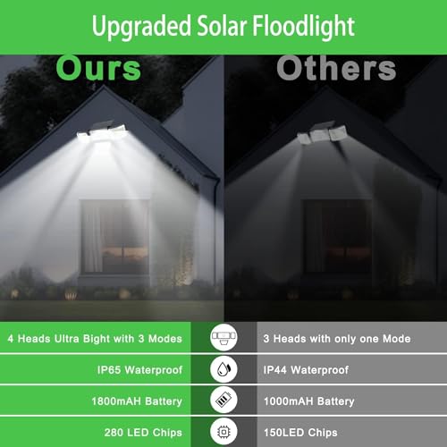 Specification: dalattin Solar Flood Lights, 280 LED Solar Wall Light Outdoor, Dark to Dawn, IP65 Waterproof, 4 Heads 270° Wide Angle Motion Sensor, for Yard, Wall, Garage, Steps (4)