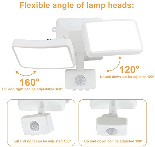 Specification: DLLT LED Motion Sensor Outdoor Light, 20W 6000k Plug in Security Lights 2 Adjustable Heads IP65 Waterproof Motion Detected Flood Light for Garage Yard Garden Porch