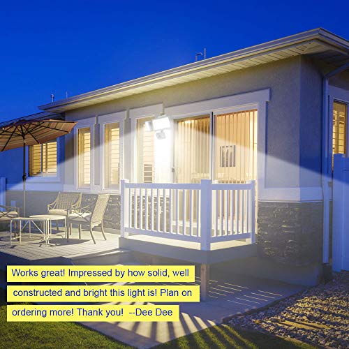 IP65 Waterproof & Easy Install: Higher IP65 waterproof level that may be better sealing and more waterproof than other similar products ensures that your 2 head out of doors security light fixture can resist rain, sleet or snow weather. It’s perfect for Entryways, Stairs, Yard, workshops, and large area lighting requirements. Very easy to mount by following a couple of simple wiring steps..