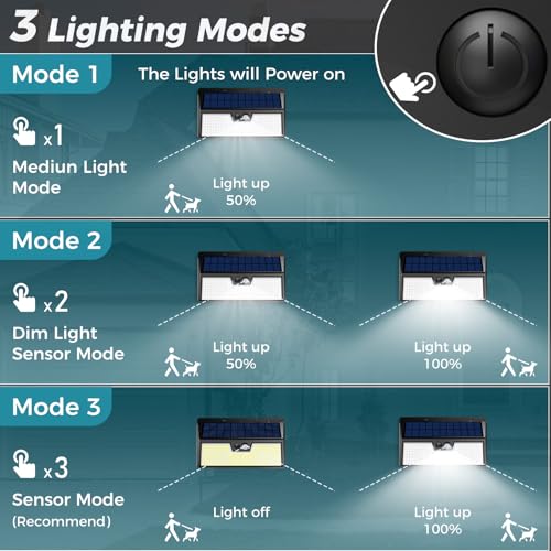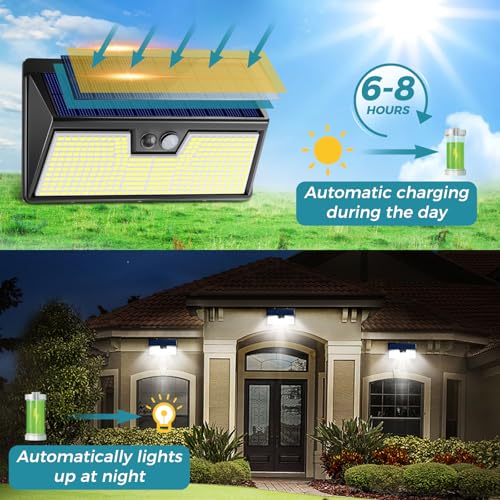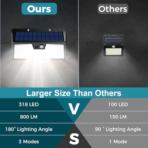 Specification: kolpop Solar Lights Outdoor Waterproof, 318LED 2000LM Solar Motion Sensor Lights Outdoor 3 Modes Super Bright Security Solar Wall Lights for Garden, Fence, Front Door, Yard(2pack)