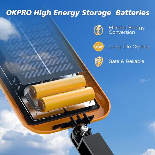 [2-YEARS EFFORTLESS AFTER-SALES] OKPRO solar street light out of doors is crafted with precision and durability, ensuring a long lasting investment. Our solar security lights have a warranty of up to 2 years. If in case you have any questions about out of doors solar lights for yard, please feel free to contact our customer service team and we can respond within 24 hours