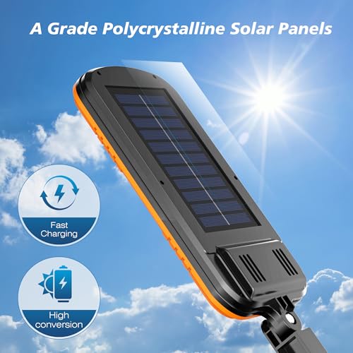 [ EFFICIENT SOLAR POWERED ILLUMINATION ] Powered by a grade A polycrystalline solar panel, features fast charging and high conversion. These solar lights boast an impressive 25% solar energy conversion rate. With a 5000mAH battery fully charging in 4-6 hours, these solar lights for outside provide continuous lighting for 6-8 hours