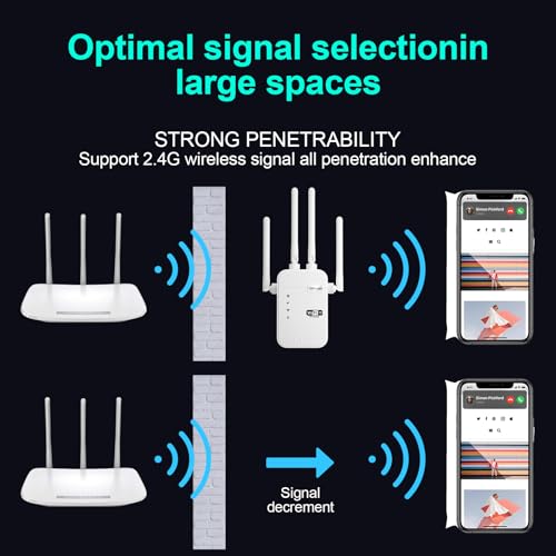 Specification: 2024 WiFi Extender Signal Booster Repeater for Home Cover Up to 12805 sq.ft Dual Band 5GHz/2.4GHz WiFi Signal Strong Penetrability 100 Devices 4 Modes Antennas 360° Full Coverage with Ethernet Port