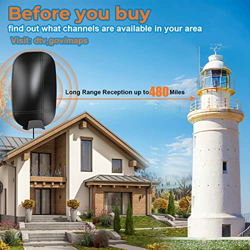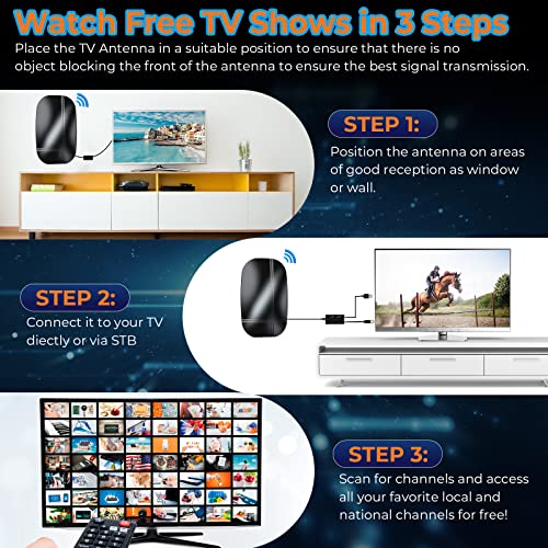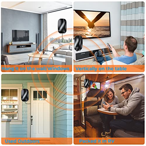 ✅HDTV Picture & Clear Sound Quality—Our Amplified antenna use the upgraded smart chip, the latest generation of amplifier signal enhancer and filtering technology to picks up signals within 1000+ miles range. It result in 4k and 1080p picture, low noise and access to more free channel with High Gain, Long Range and Stable Signal reception.