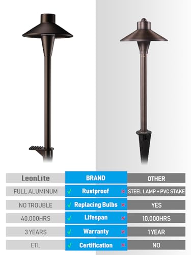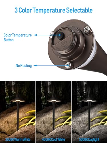 Specification: LEONLITE 3CCT Low Voltage Pathway Lights, 12-24V LED Landscape Path Light, 3000K/4000K/5000K Selectable, CRI90, IP65 Waterproof Landscape Lighting, Aluminum Housing, Oil Rubbed Bronze, Pack of 6