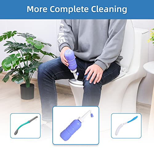 【Affordable 4 Piece Set】The package includes a curve handled brush, portable bidet, toilet aids for wiping and a storage bag. Compared with purchasing separately. This kit has a more affordable price.