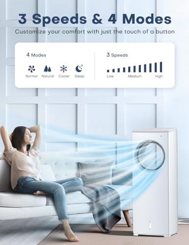 Specification: 32 INCH Evaporative Air Cooler, Windowless Swamp Cooler Air Conditioner w/Sleep/Natural/Normal/Cool Mode, 3 Speeds, Remote & Smart Timer for Auto-Off, Bladeless Portable Air Cooler for Room