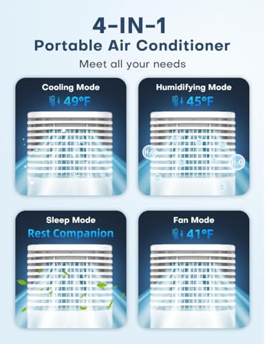 ❄️【𝟒 𝐌𝐨𝐝𝐞𝐬 & 𝟑 𝐒𝐩𝐞𝐞𝐝𝐬】Enjoy personalized cooling with our portable air conditioner which features 4 modes: Cooling/Sleep/Normal/Nature. Adjust settings to your preference and enjoy optimum comfort. Customize airflow with 3 fan speeds (low-13ft/s, medium-20ft/s, and high-27ft/s) for the perfect breeze. With 12 cooling combinations, find the perfect match for all your needs. Indulge in the customized cooling you deserve with our air conditioner portable for room!