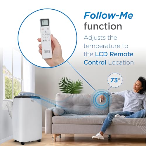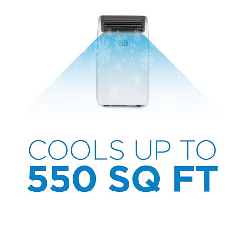 Specification: BLACK+DECKER Portable Air Conditioner, 8,150 BTU SACC/CEC (12,000 BTU ASHRAE 128) for Rooms Up To 550 Sq. Ft., Portable AC with Follow Me Remote Control, White
