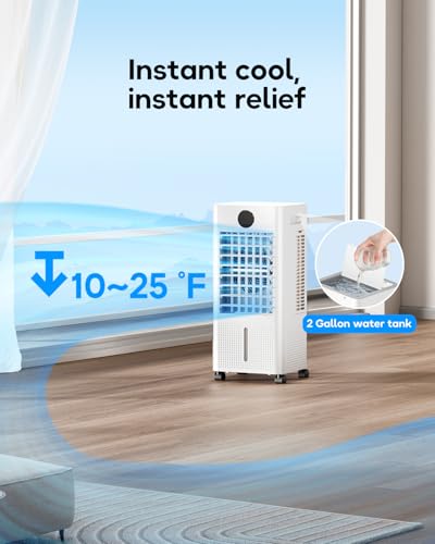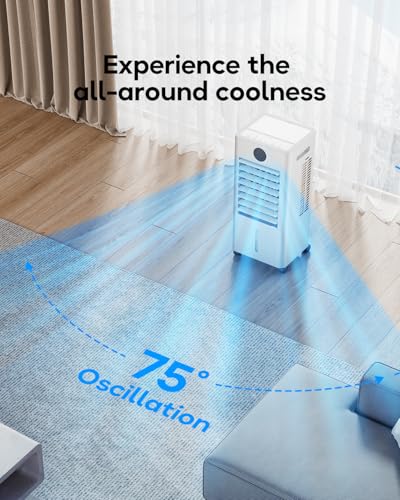 Evaporative Swamp Cooler, 22-inch Portable Air Conditioner, with Ice Packs, Remote, Timer, AC Unit for Indoor, Oscillating Fans that Blow Cold Air
