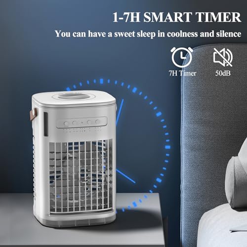 Portable Air Conditioners, 3-1 Mini Evaporative Air Cooler w/Remote, 1.2L Water Tank & 2 Ice Packs, 1-7H Timer, 5400mAh Battery With USB Charging, Personal Fan For Desktop Home Office Outdoors