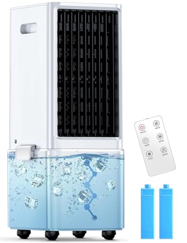 Portable Air Conditioners w/Remote, 4 Modes & 3 Speeds, Waterless Alert System & 2.4-Gal Tank, 12H Timer for Auto Off, 3-IN-1 Evaporative Air Cooler for Room Bedroom Office