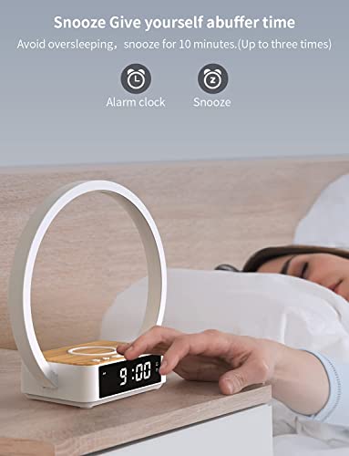 Specification: Amouhom Table Lamp, 18W Touch Lamp Alarm Clock with Wireless Charging Wake-Up Light, Digital Sonic 10W Max Qi Charger Nightstand Reading Lamps for Bedside, Reading, Home, Office