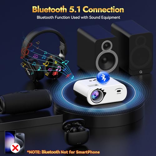 【Bluetooth 5.1 Function & HiFi Stereo Speakers】 Enjoy a cinematic audio-visual experience with our built-in upgraded stereo speakers that deliver powerful sound and excellent audio quality. The projector features Bluetooth 5.1 technology, allowing you to wirelessly connect to your preferred Bluetooth speakers or headphones for even more immersive sound. Experience faster and more stable audio synchronization. Perfect for movies, games. Note: Bluetooth does not reinforce smartphone connections.