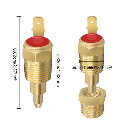 3/8″ NPT 185’F On – 170’F Off : STZJAYE electric fan thermostat temperature switch thread size: 3/8″ NPT. Fan ON Temperature Fahrenheit: 185 Degree, Fan OFF Temperature Fahrenheit: 170 Degree. Very best fit for any of 10, 12, 14, and 16 inch fans, including dual fans.