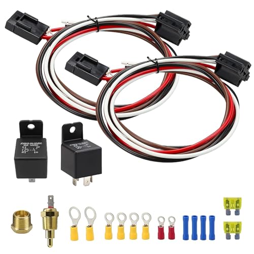 Specification: Dual Electric Fan Relay Kit,with Thermostat Radiator Fan Temperature Sensor Switch 185 On 175 Off,Automotive 40 AMP Cooling Fan Relay Switch Kit 4 Pin, Waterproof Dual Electric Fan Wiring Kit