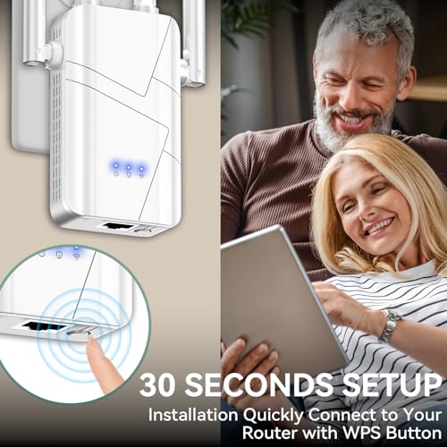 JUST PRESS AND THE SETUP DONE: 1-Click setup. All you need to do is press the WPS button on your router and the WPS button on our internert extender. Single-Tap WPS connects your device within 30 seconds