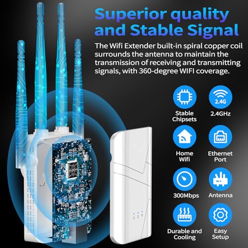 Specification: 2025 WiFi Extender Signal Booster for Home – up to 10000 sq.ft Coverage, Wireless Internet Repeater – Long Range WiFi Booster and Signal Amplifier w/Ethernet Port, 1-Tap Setup