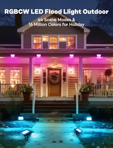 【Smart RGBW Flood Lights Outdoor】Dimmable 36W, 360W Equivalent, 3600LM, Warm White (2700K) + White Light (6500K) + RGB multicolor LED outdoor lights,achieve 1%-100% dimming with the Surplife APP or remote Keep watch over. ALFELE Outdoor flood light has 16 million color options and 44 preset/custom scenes, meet your daily lighting and decorative lighting needs and provide more vibrant lighting effects. (Note: No toughen individual light Keep watch over, only one color can be displayed at a time.)