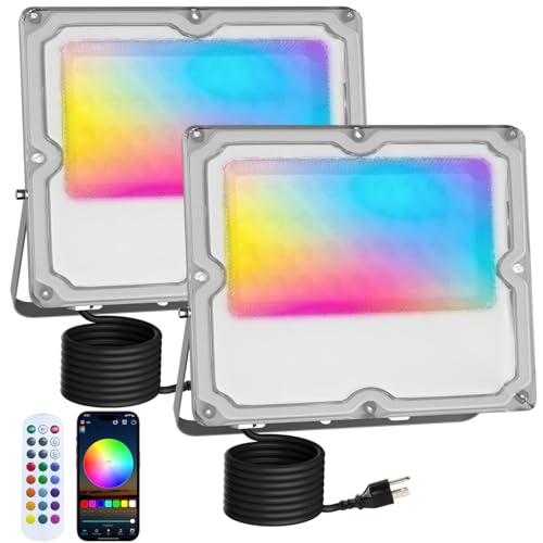 Specification: RGB LED Flood Lights Outdoor,Color Changing,30W (300W Equivalent),3000LM, Works with Bluetooth App or 2.4G Remote Control,IP66 Waterproof,16 Million Colors, Timing, Music Sync,5000K,2-Pack