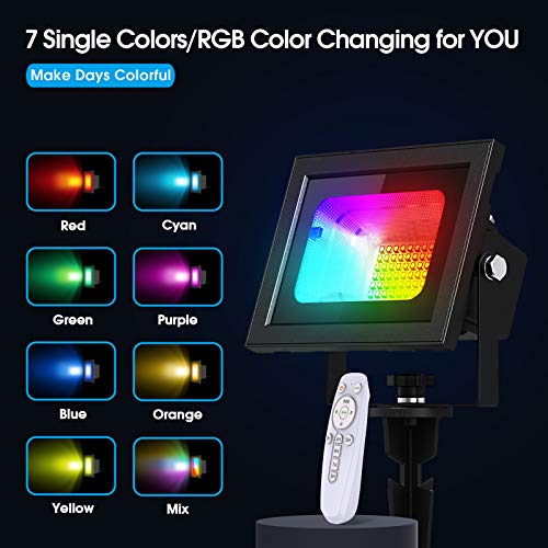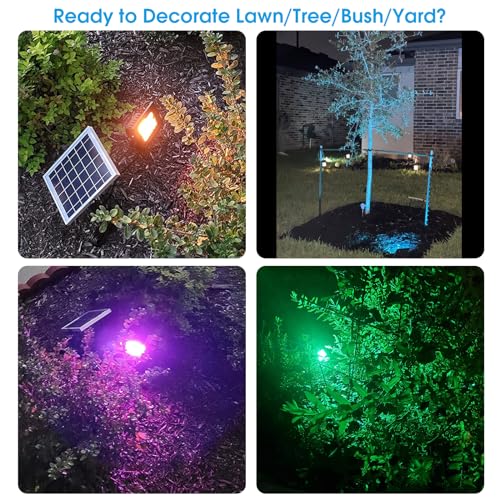 Specification: RGB Solar Flood Lights Outdoor Solar Spotlight, 7 Singe Colors & Color Changing Solar Spot Lights with Remote Control, 60LED IP65 Waterproof Landscape Light for Lawn/Patio/Tree/Yard/Garden