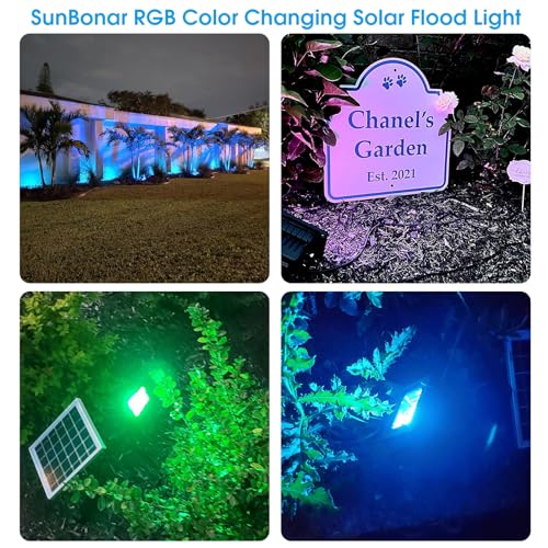 🏡【7 Singe Colors & RGB Color Changing】SunBonar color changing solar flood lights outdoor, light up 7 single colors (red, green, blue, yellow, cyan, purple, orange) & mix RGB color changing, to meet different landscape lighting needs. We can’t wait to decorate your garden, lawn, tree, yard & patio.
