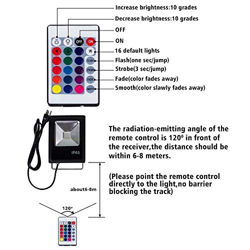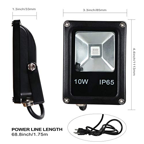 【Waterproof and Durable】The 10W RGB flood light is mode of IP65 waterproof, all weathers and seasons resistant. Besides, this led flood light is made of efficiency aluminum for good heat dissipation and durability.Please note that the floodlight can’t be soaked in the water or put it into the water for a long time(Note: The plug is not waterproof).