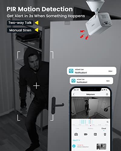 💬【2-Way Audio & Built In Siren】Built-in microphone and speaker permits you to be in contact with your family, pet, visitor by remotely controlling the ieGeek Cam APP when off-site. This indoor camera wireless also supports manual siren to scare away the unexpected intruder, keep your property protected. ieGeek provides you 2 YEARS warran*y. Any questions about the camera, just conta*t us. 🥰