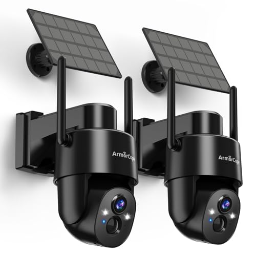 2Pack 2K HD Solar Security Cameras Wireless Outdoor, 360° PTZ View Outdoor Cameras for Home Security,Color Night Vision with Spotlight, 2-Way Audio,Motion Alarm, IP65 Waterproof