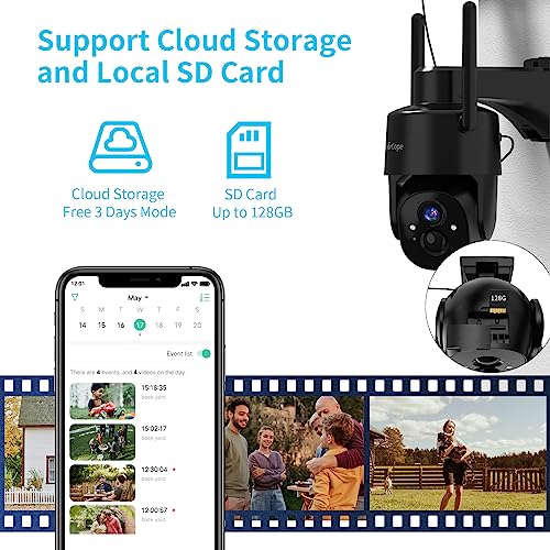 【Easy Setup & SD/Cloud Storage】 With reliable and stable 2.4Ghz WiFi connection (5G is not supported), You’ll effortlessly enjoy uninterrupted video streaming and remote access to your camera from anywhere at any time.You’ll choose to store event recordings on an SD card (up to 128G, SD card not included) or in cloud storage (Free cloud for 3 days videos),at all times secure and easily accessible.