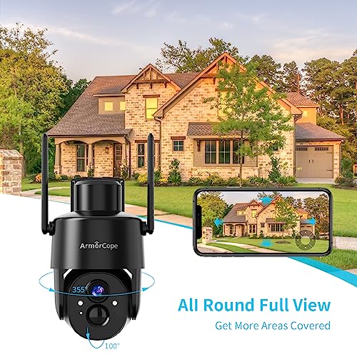 【360° PTZ View & IP65 Waterproof 】 This PTZ outdoor security camera has a 355° horizontal and 100° vertical rotation range, allowing it to capture wider areas and record crystal-clear videos. IP65 waterproof rating and ability to operate in temperatures ranging from -4°F to 131°F, make it ideal for use in quite a lot of weather conditions, ensuring the safety of your home all the time.