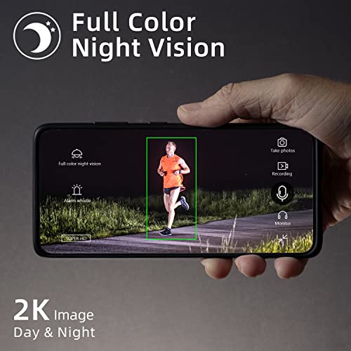 【2K QHD Live Video & Color Night Vision】The security camera with a 120° wide angle records video in 2K for a clear picture that permits you to see more corners of your home. Full-color night vision will give you the same vision at night as all over the day.