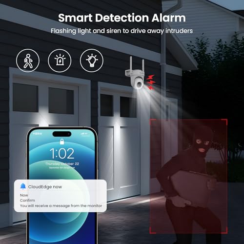 Specification: BondFree 2 Pack 5MP Security Camera Outdoor 2.4/5G WiFi Cameras for Home Security with 360°PTZ Surveillance Camera,24/7/Color Night Vision/PIR Detection/2 Way Talk/Compatible with Cloudedge