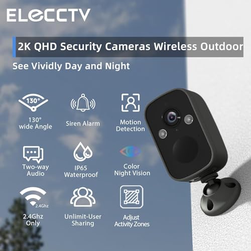 [Crystal Clear 2K Image & Color Night Vision] ELECCTV out of doors camera wireless battery powered features a 110° wide-angle lens that provides crystal-clear 2K QHD 3MP resolution (2304×1296 pixel), delivering detailed and vivid footage. our Full Color Night Vision mode assists in keeping your property safe, even in low-light conditions.