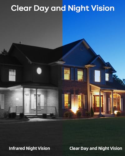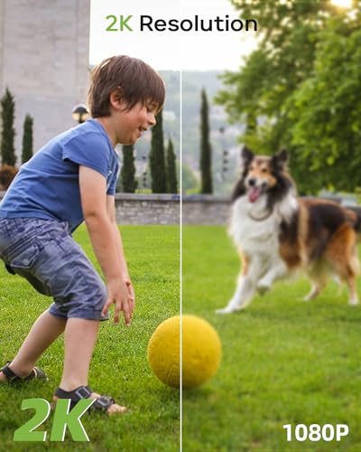2K Resolution & Full Color Night Vision: Security cameras wireless out of doors deliver 2K video quality with 2 white lights and 4 IR lights for clear images in complete darkness, with a viewing range up to 55 feet