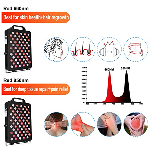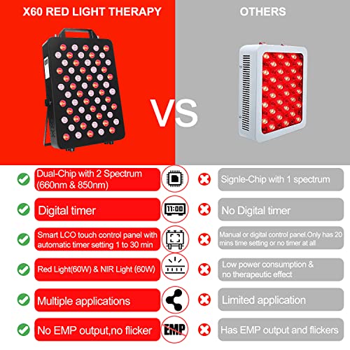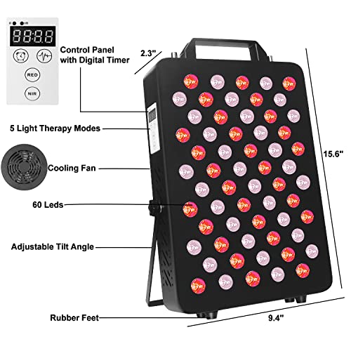 Specification: Red Light Therapy Device for Body, Face. Near Infrared Light Therapy 660nm 850nm, 60 Dual Chip Flicker LEDs, Improve Sleep, Pain Relief, Skin Health, Anti-Aging, Energy, Recovery. 120W