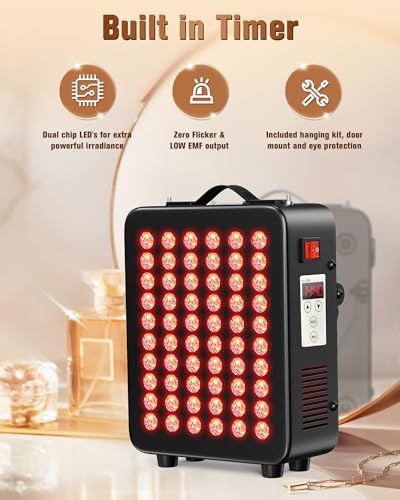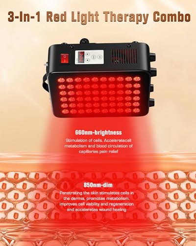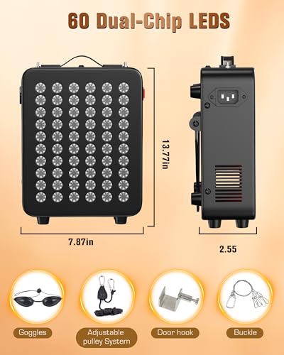Specification: Red Light Therapy, Dual Chip Clinical Grade Infrared red Light Therapy Device with 660nm 850nm High Power Panel for Face and Body Recovery, Improve Sleep, Skin Health