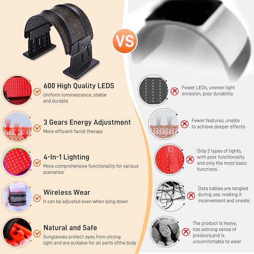 Multi-Purpose Body Care: The red light therapy device is suitable for full body use. The use of the straps can help chill out the waist, legs, shoulders and back. In addition, the grooves on the brackets allow the lampshade to light upright. Enjoy professional, Secure and effective skin care at home