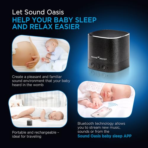 Sound Oasis Baby Sound Machine with Bluetooth – 20 Soothing Sounds, Portable, Includes New Help Booklet and Baby Sound Therapy App for Sleep and Relaxation