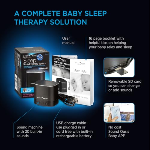 Specification: Sound Oasis Baby Sound Machine with Bluetooth – 20 Soothing Sounds, Portable, Includes New Help Booklet and Baby Sound Therapy App for Sleep and Relaxation