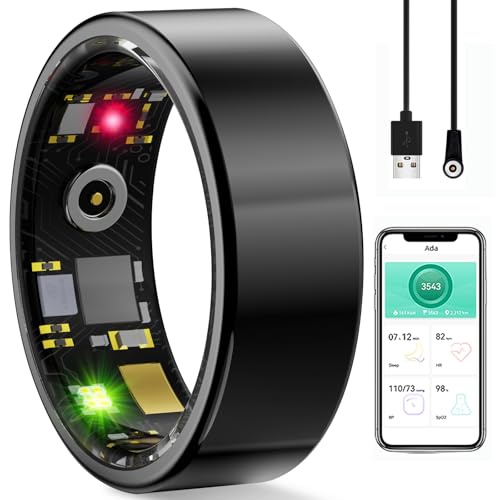 Smart Ring Health Tracker, Fitness Rings for Women & Men – Sleep Tracker/Stress/Heart Rate Monitor, IP68 Waterproof, No App Subscription, 5 Days Battery Life (Black, Size 8-18.1mm Diameter)