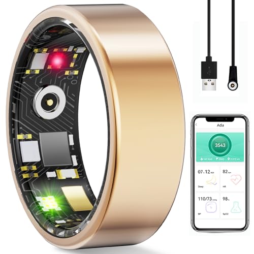 Specification: Smart Ring Health Tracker, Fitness Rings for Women & Men – Sleep Tracker/Stress/Heart Rate Monitor, IP68 Waterproof, No App Subscription, 5 Days Battery Life (Gold, Size 8-18.1mm Diameter)