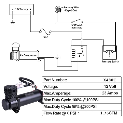Versatile Adaptability: The 12 V air ride suspension compressor is capable of providing a full duty cycle at 100 PSI and partially throttled operation at 200 PSI. This multi-pressure design means that whether you are performing basic air tool operations or higher pressure industrial applications, the compressor can be adjusted to accommodate different pressure requirements, providing extreme flexibility and ease of use.