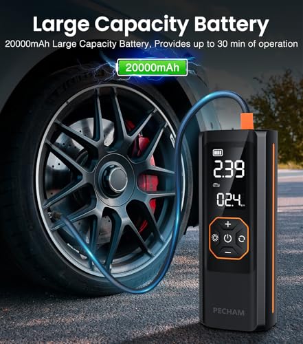 Specification: PECHAM Tire Inflator Portable Air Compressor,USB 5V 20000mAh Battery 160PSI Cordless Tire Pump Electric Air Pump for Car Tires,Fits Car/Truck/Motorcycle/Balls/Bicycles