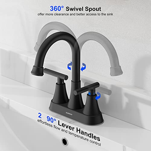 Specification: Bathroom Faucets for Sink 3 Hole, Hurran 4 inch Matte Black with Pop-up Drain and 2 Supply Hoses, Stainless Steel Lead-Free 2-Handle Centerset Faucet for Sink Vanity