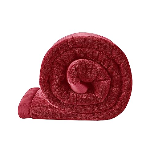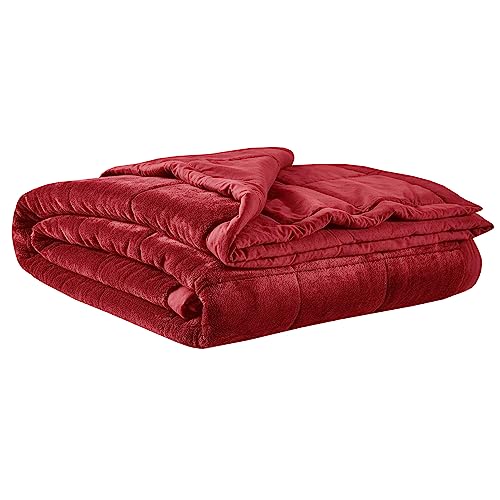 Madison Park Twin Cozy Blanket HeiQ Smart Temperature Plush to Microfiber Reverse Box Quilting, Reversible, Soft All Season, Lightweight Summer Cover, for Bed, Couch and Sofa, Twin/Twin XL, Burgundy