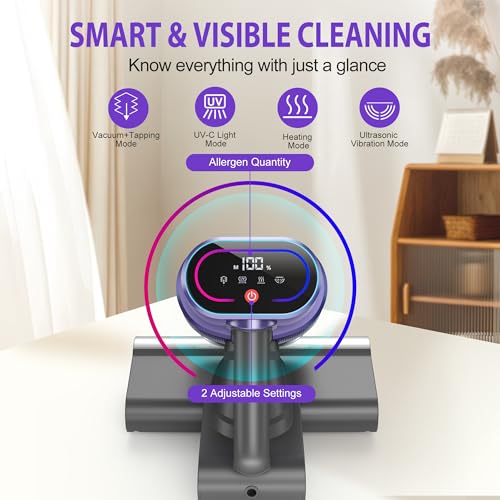 【SAVE TIME】The 254nm UV-C light and 60°hot air can clean the underside of the mattress whilst handle dryness. High frequency tapping effectively loosens deep-seated dust, making tdust easier to cleanance. bed vacuum cleaner uv sanitizing saving your time more efficiently.