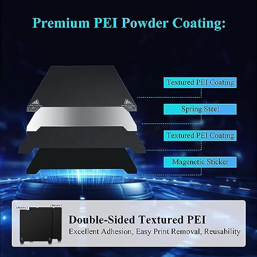 Reliable and Cost-effective: This 3D printer bed can handle the tough conditions of 24/7 printing with the ultra-high temperature of up to 120°C, making it perfect for materials like PLA, PETG, ABS, TPU, ASA, Nylon, and PC. Both sides of the PEI sheet can be printed, pay once and get twice the usage time.
