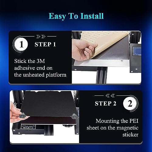 Simple Set-up: Our PEI Sheet has two parts, a flexible steel platform and a magnetic bottom sheet with adhesive on the back. Simply attach the magnetic base plate to the printer’s hot bed and adsorb the PEI bottom to start printing immediately.