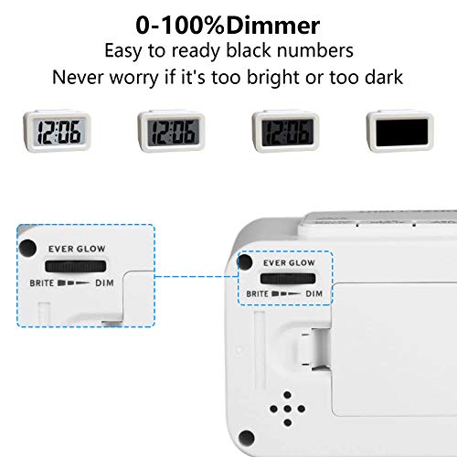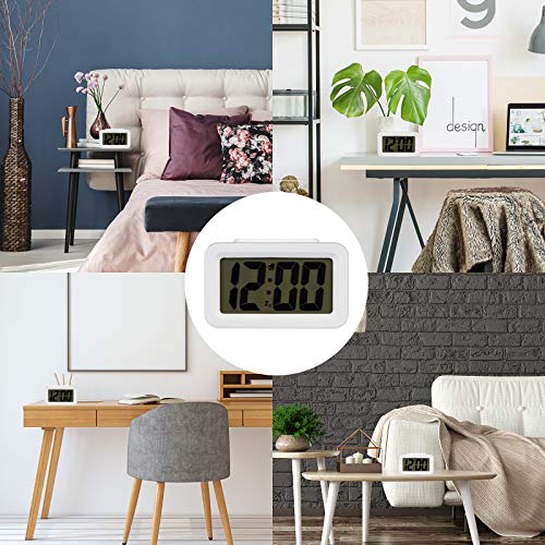 Creative Nightlight Smart Light Alarm Clock Bedside Desk Table Electronic Clock Battery Operated Mute Luminous Alarm Clock with Adjustable Light HA35 (White)